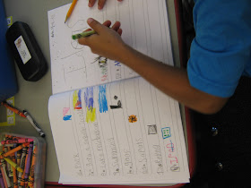 First off, we talked about our writing folders and handed out our "Book of Words".  Our class then learned about authors and how they create a writing plan before they start writing.  As the wonderful writers that we are, we created a plan and listed ideas to write about, in the front of our writing journals.  This will be a great reference for students who are stumped on what to write next.  Throughout the year we will focus on our first grade writing goals.  These are clearly stated on our "writing bulletin board" within the classroom.  As we continue to become stronger, more confident writers, the students will start feeling and seeing their own success in writing.  To help them visualize and think about their writing goals, I have posted these goals on the board with students' writing pieces to match each goal.